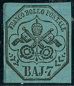 Lotto 205 | ANTICHI STATI - Pontificio - 1852 - 7 bai - decalco oleoso - traccia di piega...
