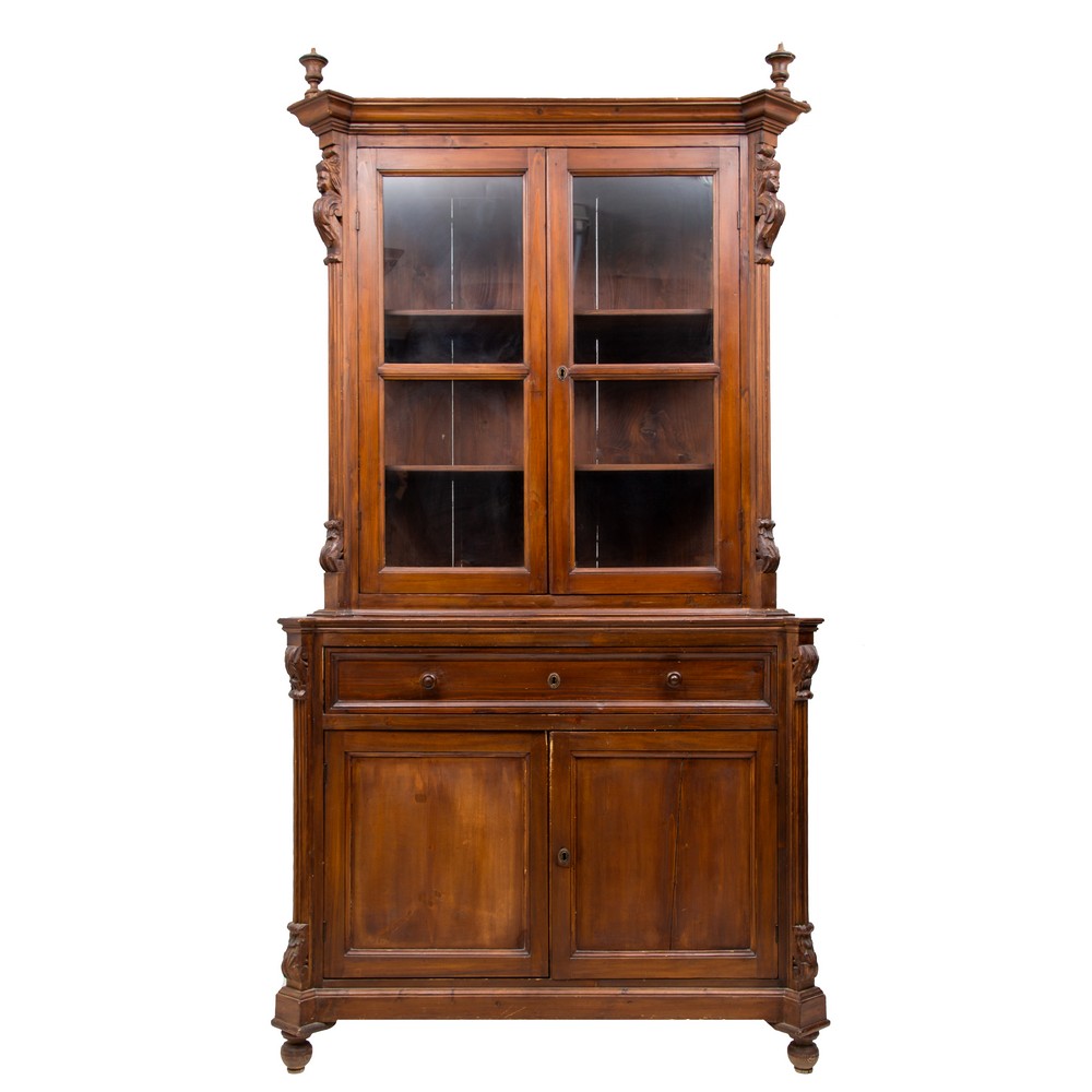 CREDENZA doppio corpo Luigi Filippo in abete a due ante nella parte sovrastante e due ante nella parte sottostante.