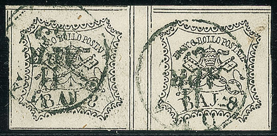 ANTICHI STATI - Pontificio - 1852 - 8 bai - coppia con interspazio al centro...