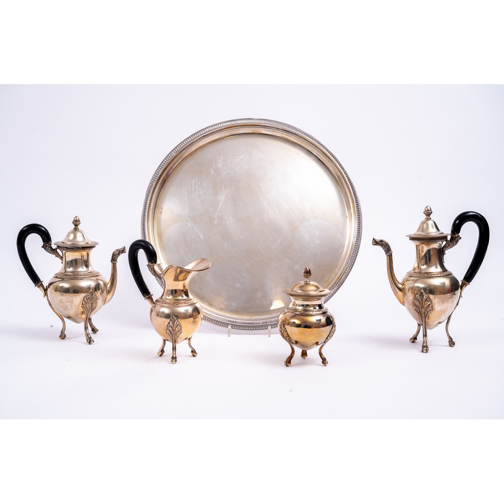 SERVIZIO QUATTRO PEZZI E PIATTO IN ARGENTO STILE IMPERO