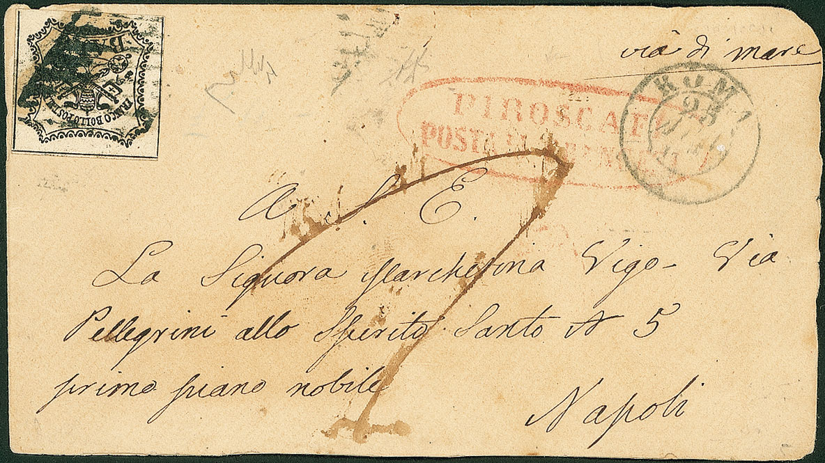 ANTICHI STATI - Pontificio - Piroscafi Postali Francesi - 8 bai su bustina da Roma a Napoli del 25.8.63 - Diena + Chiavarello (9)