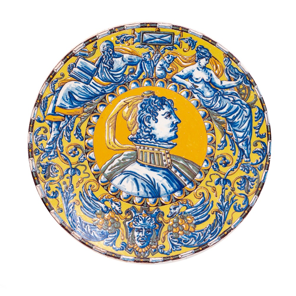 smaltata e decorata al centro raffigurante "Profilo maschile" e nella parte superiore figure rappresentanti "La cultura" e "L'arte".