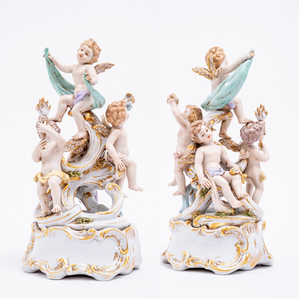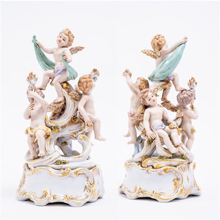 GRUPPO IN PORCELLANA di Capodimonte dipinto raffigurante "Gioco di putti".