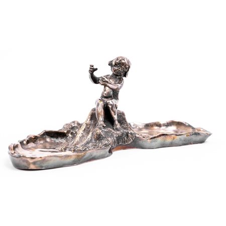 SVUOTATASCHE in bronzo argentato con scultura centrale raffigurante "Bambino".