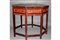 Tavolo esagonale in legno laccato e intagliato a motivi floreali e animali....