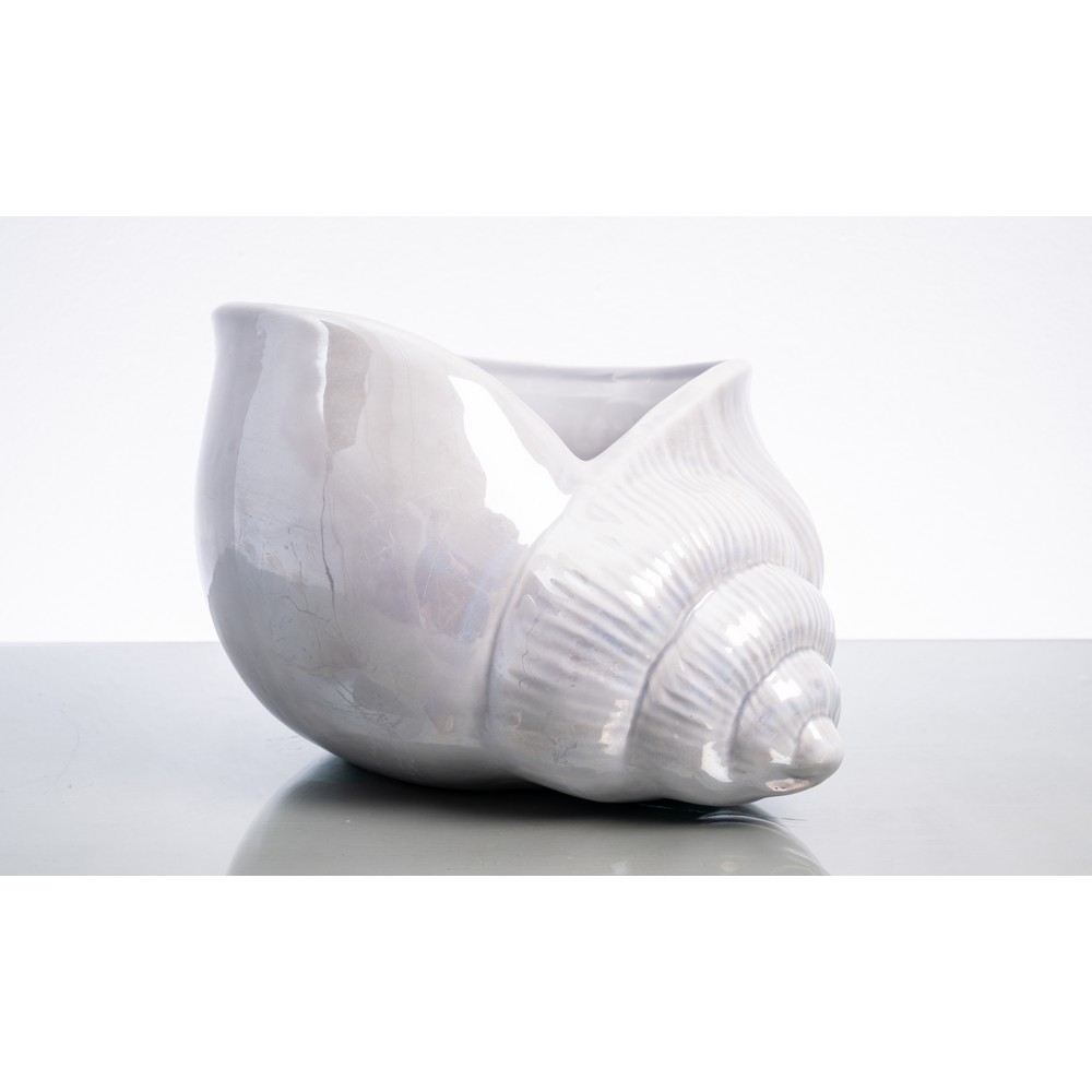 Cachepot in maiolica bianca invetriata, corpo a conchiglia.