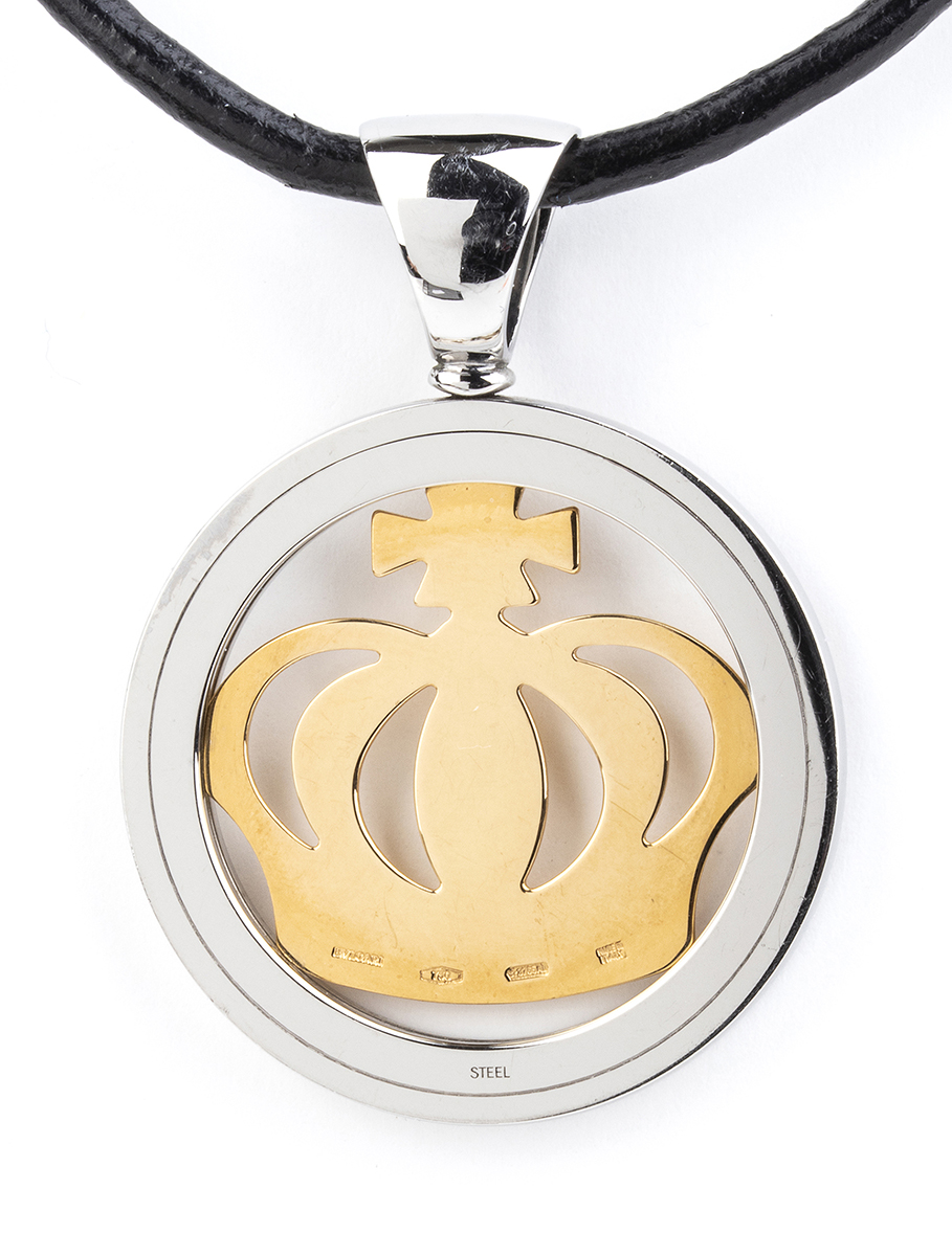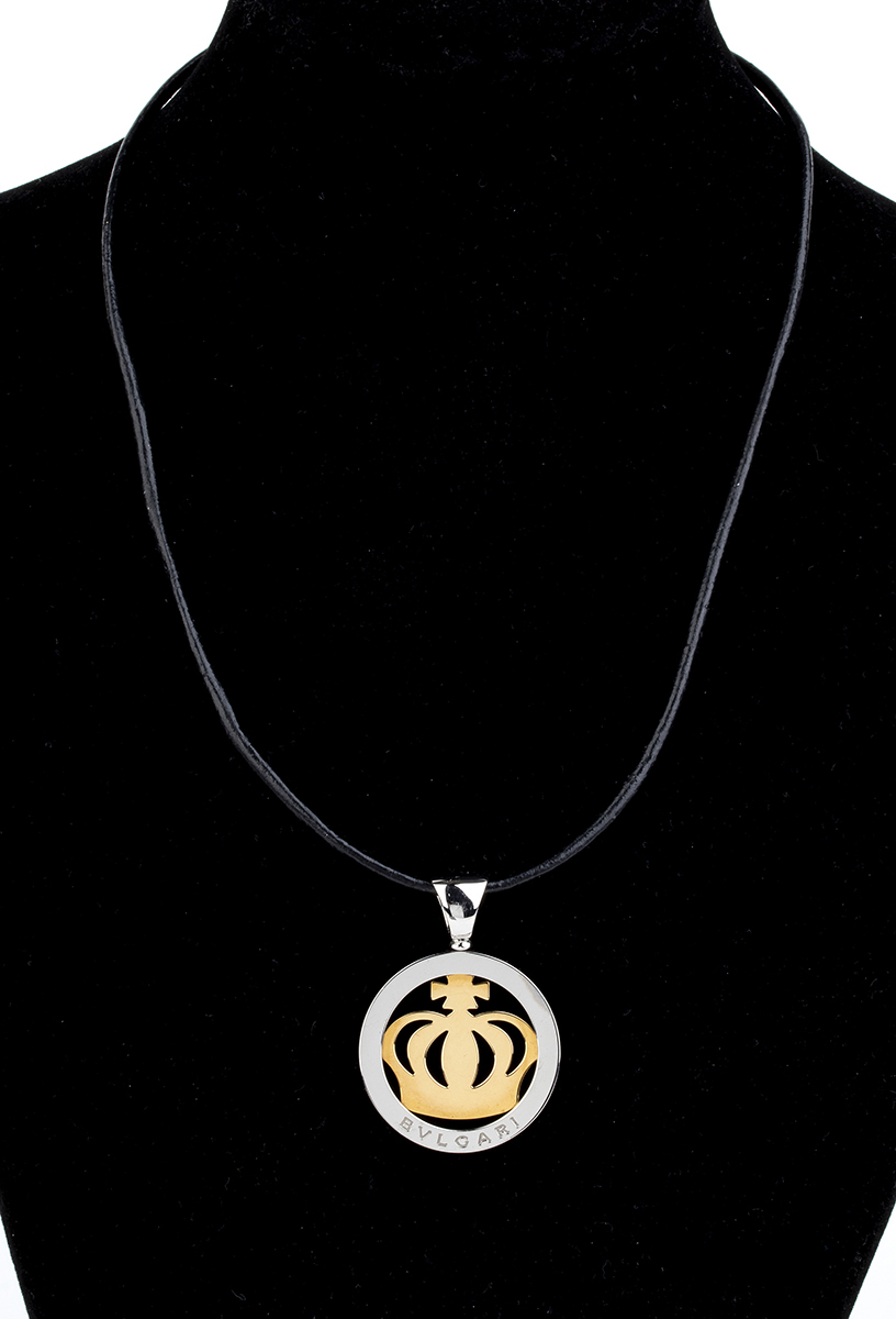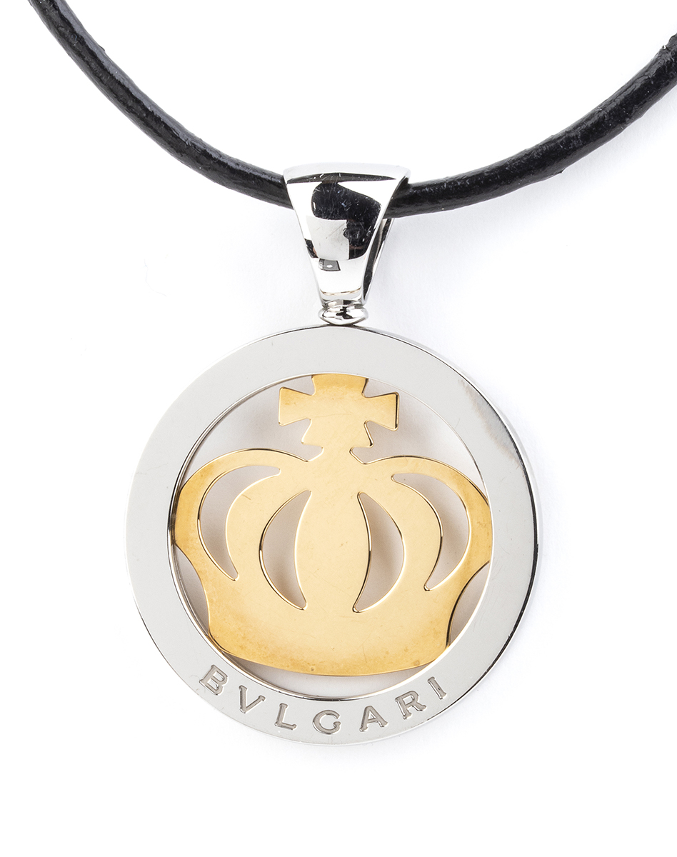 Pendente tondo-corona in oro ed acciaio - manifattura BULGARI