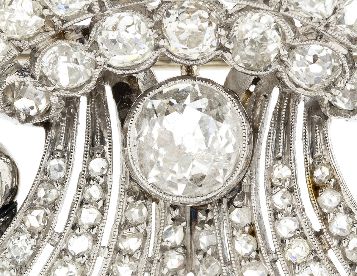 Spilla deco in platino e diamanti - Firmata S. BULGARI, anni '30.