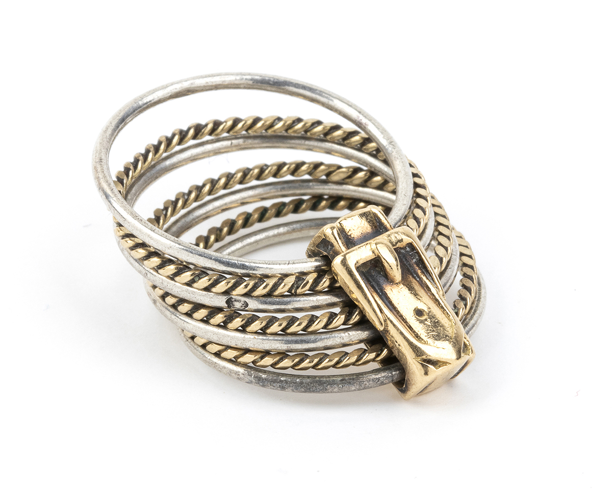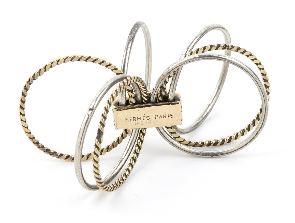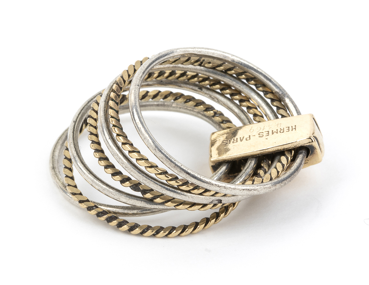 composto da sette sottili anelli in oro giallo e bianco 18k. Punzonato "HERMES - PARIS - 43.169".