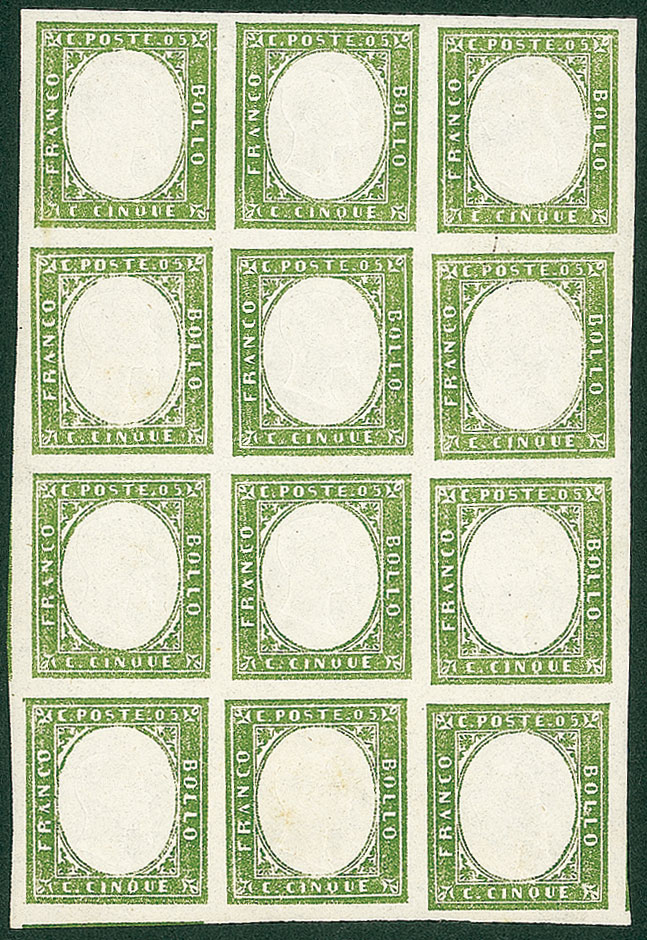 Lotto 263 | ANTICHI STATI - Sardegna - 1863 - 5 cent - blocco di dodici - gomma integra...