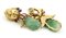 oro giallo 18k, ciascuno con motivo di maschera orientale, decori in cabochon di rubini e zaffiri, punteggiature in diamanti taglio brillante 0,50 ct circa, F-G, VVS-VS, giadeite incisa a motivi floreali.