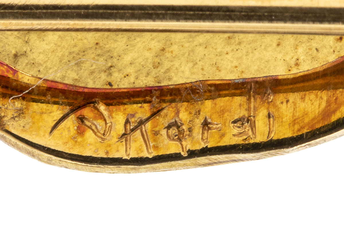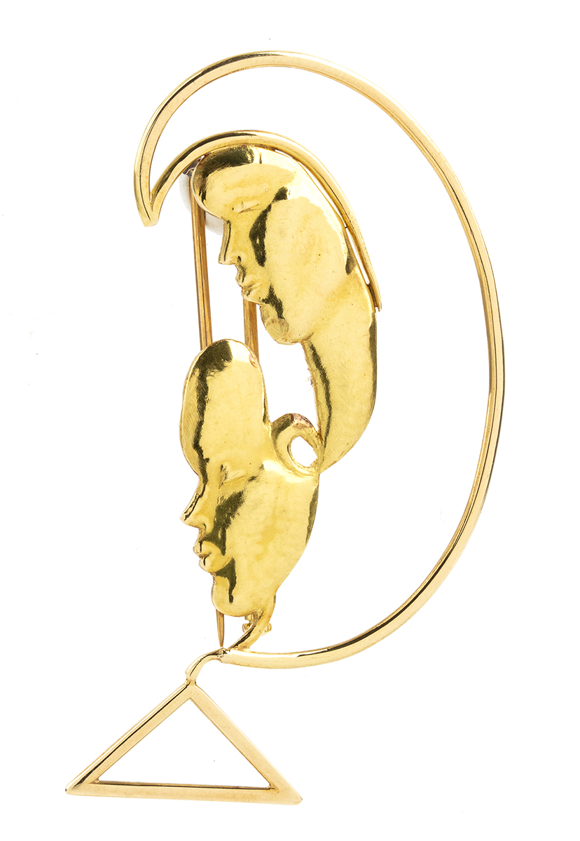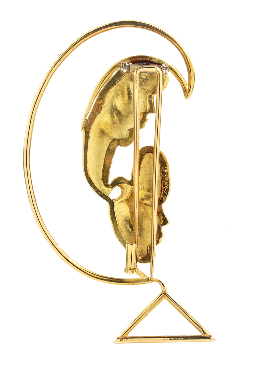 oro giallo 18k, raffigurante coppia di profili di volti. Firmata "ATTARDI".