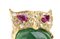 oro giallo 18k, corpo in cabochon di smeraldo 12,00 ct circa, occhi in piccoli rubini 0,60 ct circa, dettagli in diamanti taglio brillante 0,50 ct circa, G-H, VS.