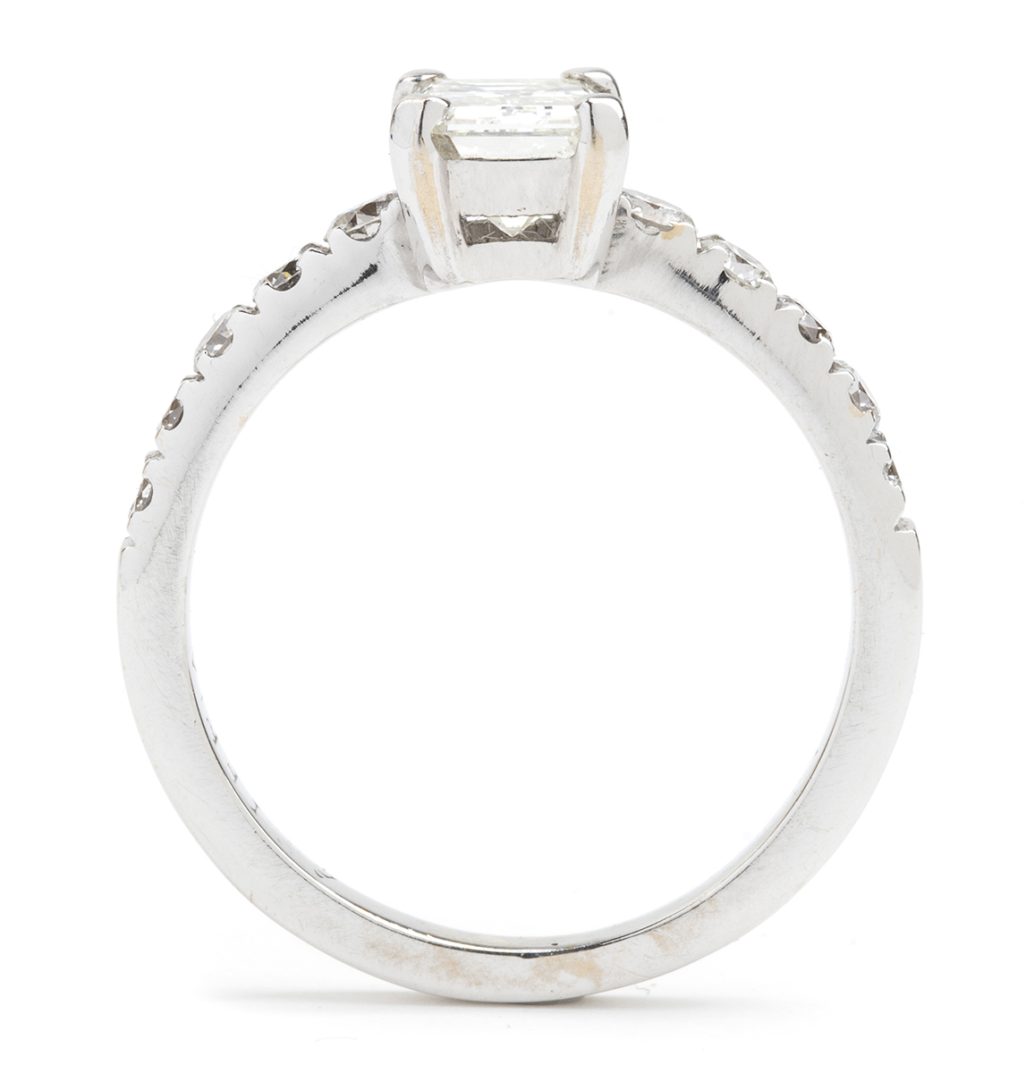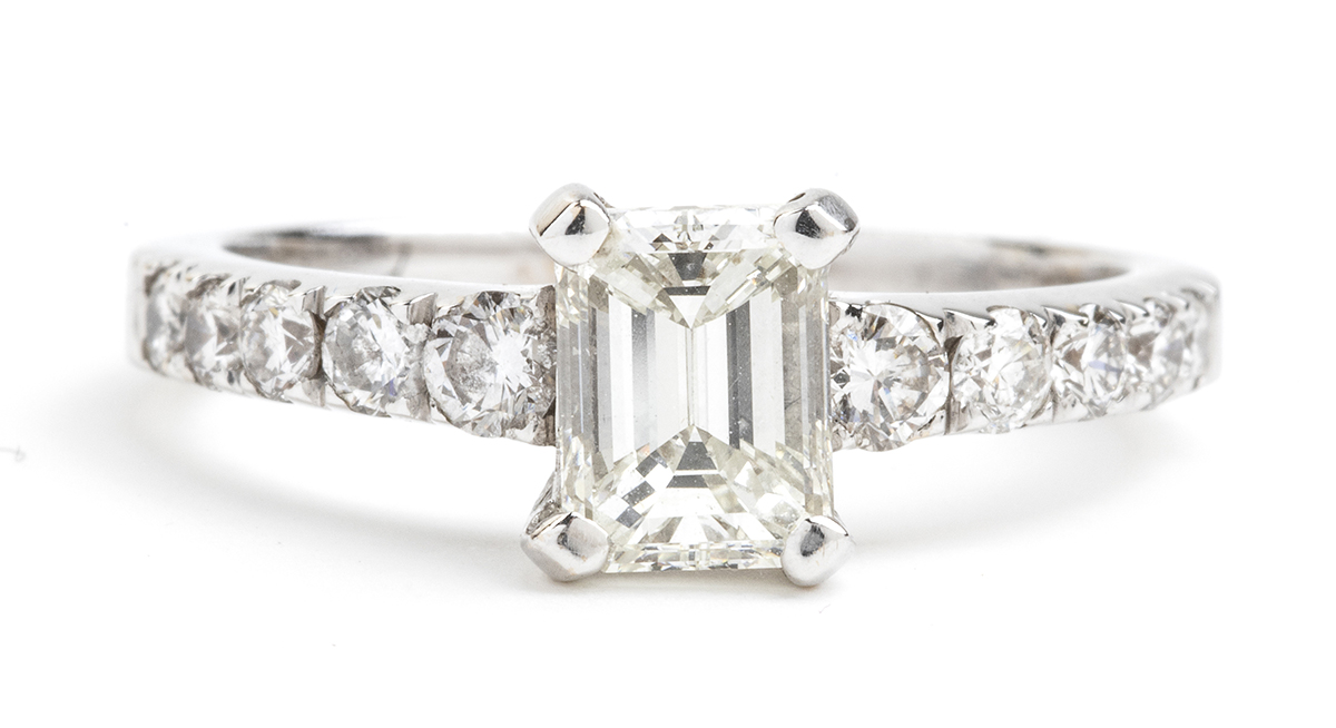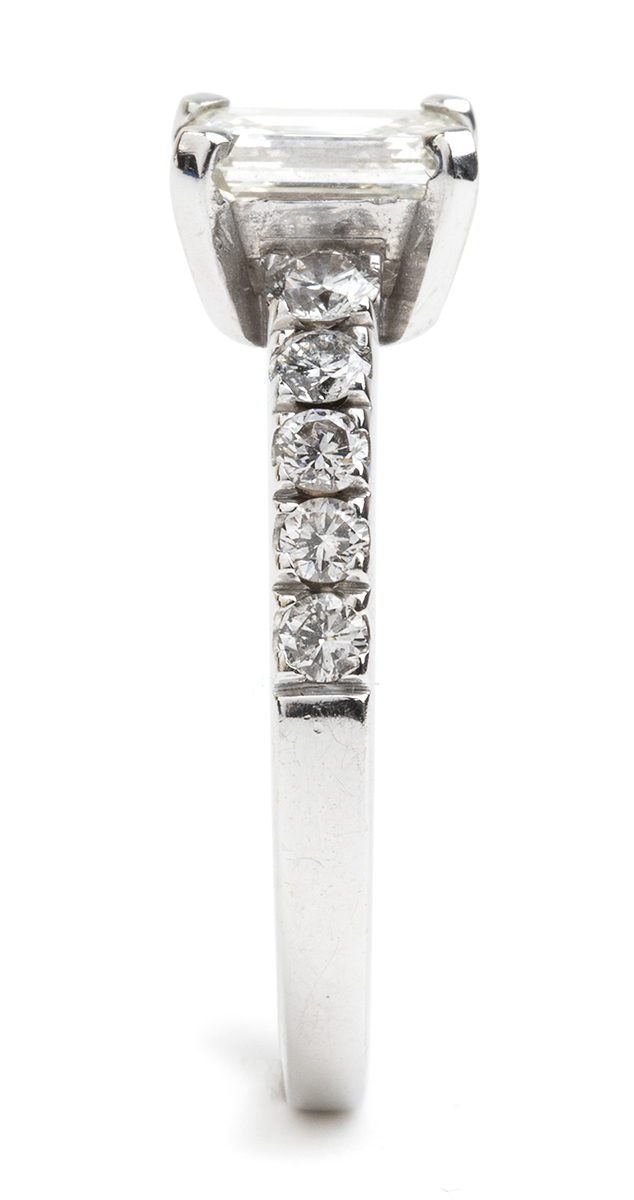 Lotto 84 | Anello in oro con diamante taglio smeraldo e diamanti taglio brillante