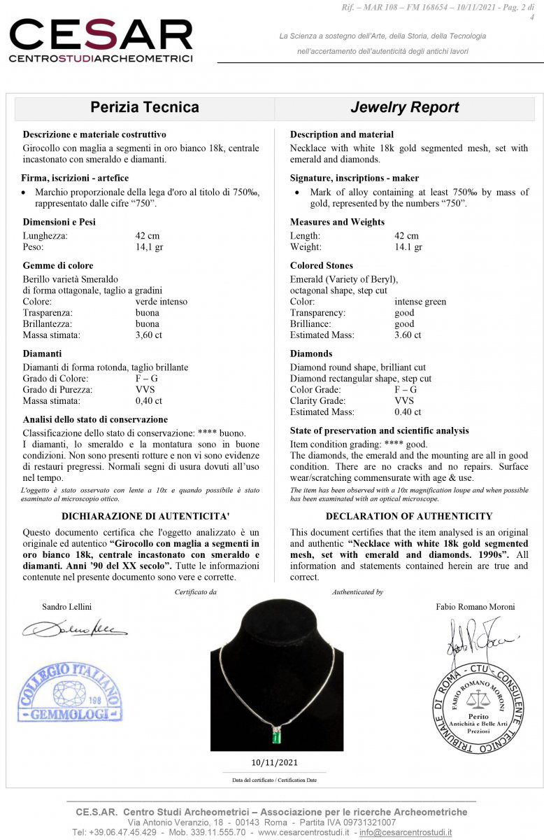 Accompagnato da certificato di verifica gemmologica Ce.S.Ar. Centro Studi Archeometrici.