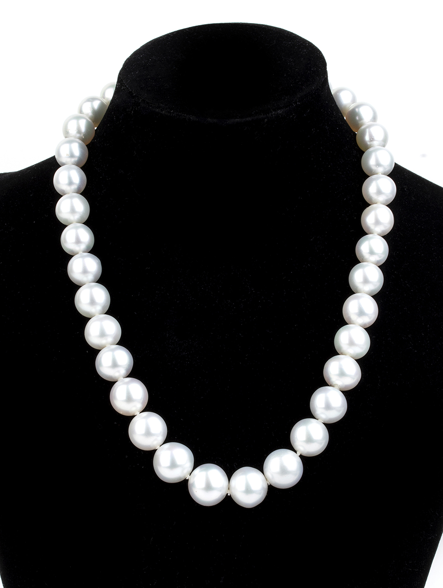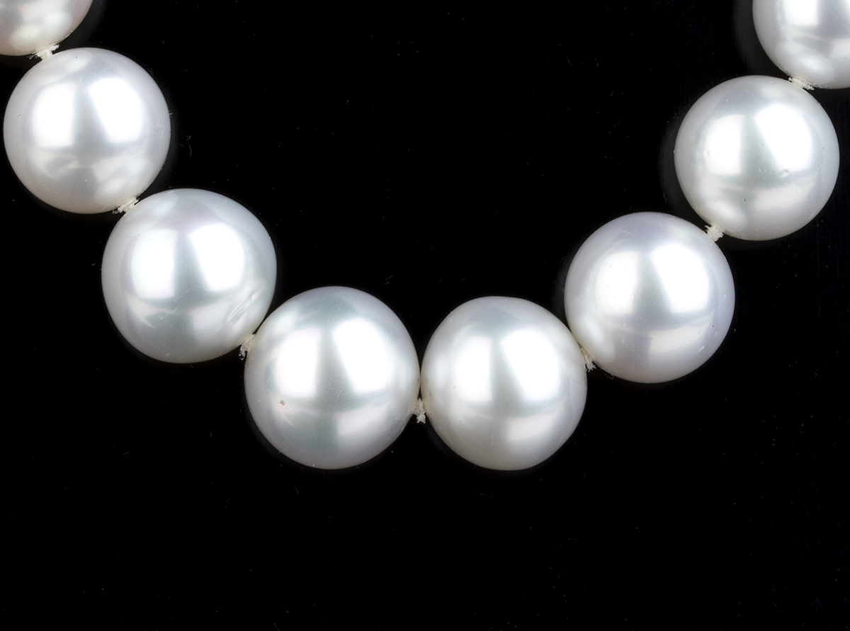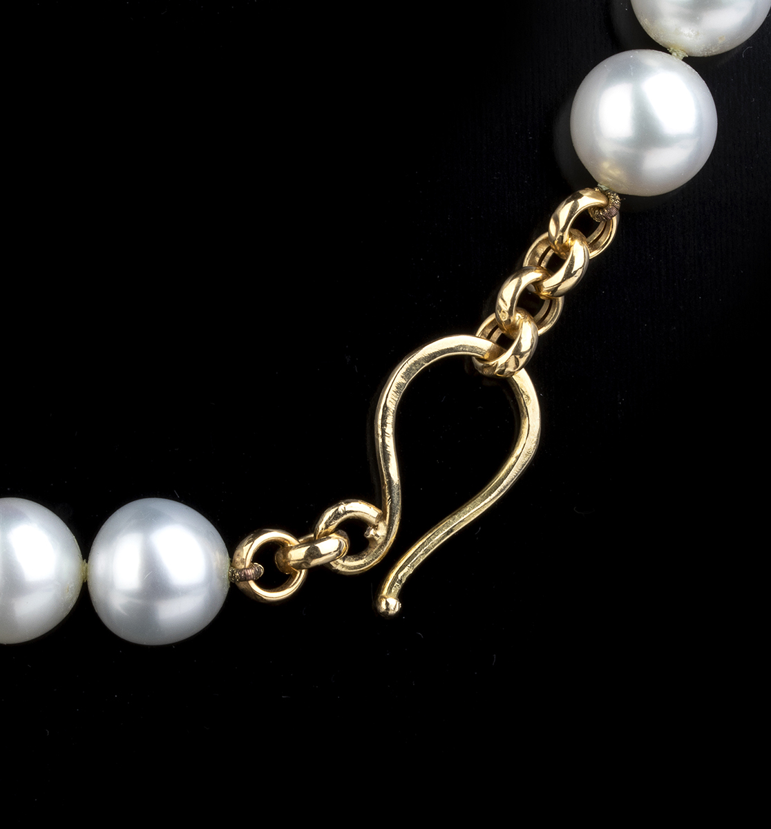 oro giallo 18k, ad un filo di perle australiane disposte in gradazione.