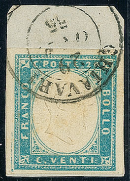 ANTICHI STATI - Sardegna - 1855 - 20 cent - Chiavari 29.10.55 - G.Bolaffi...