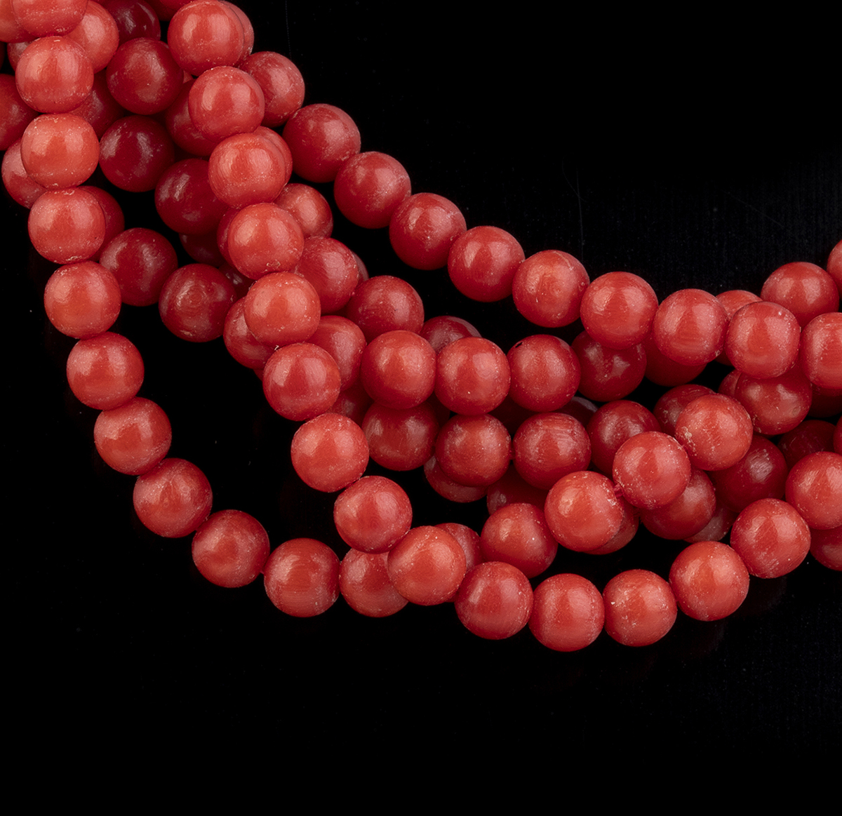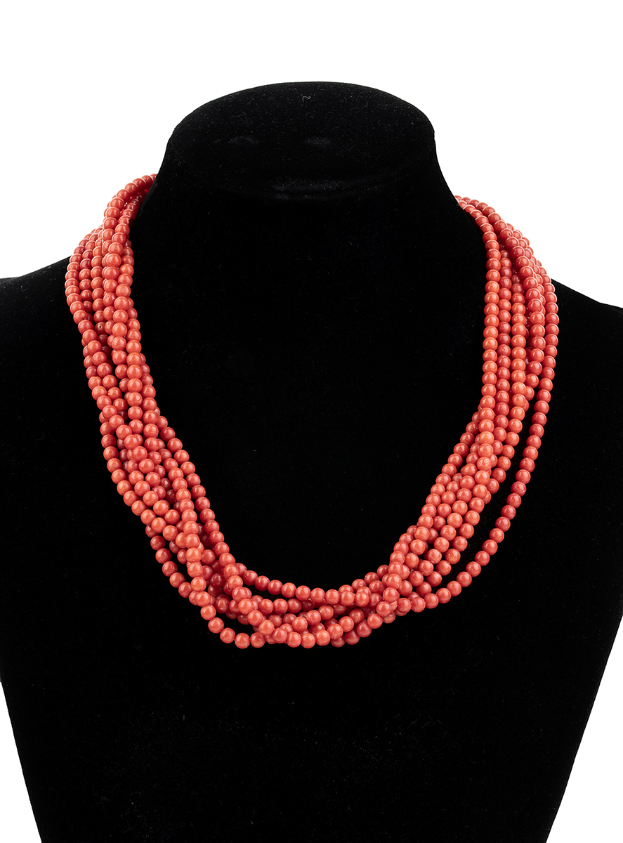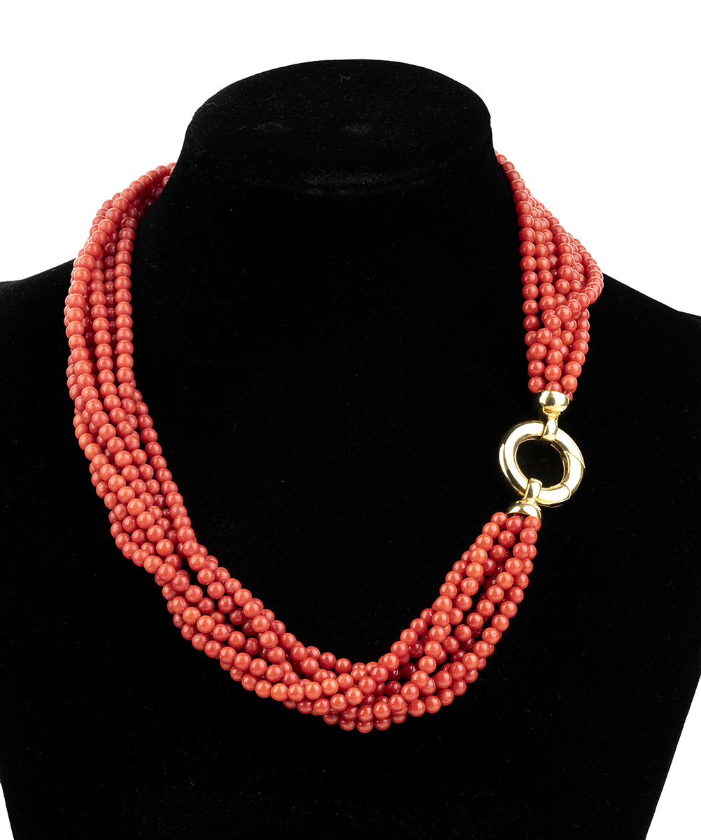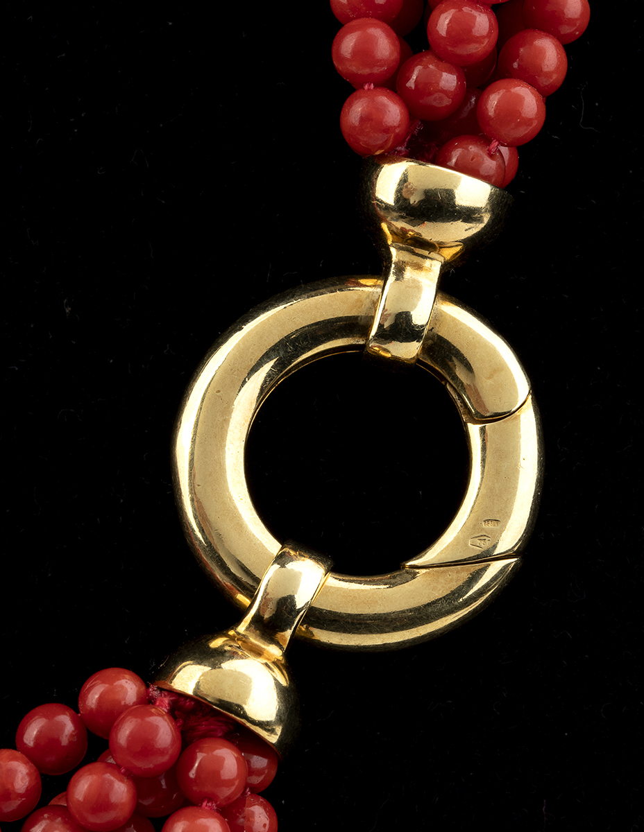 Girocollo a 7 fili di corallo Mediterraneo, fermezza in oro