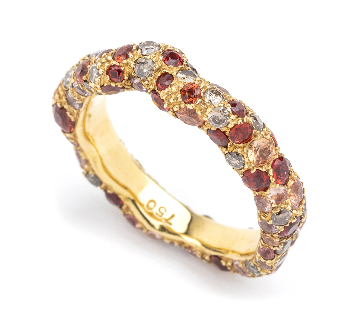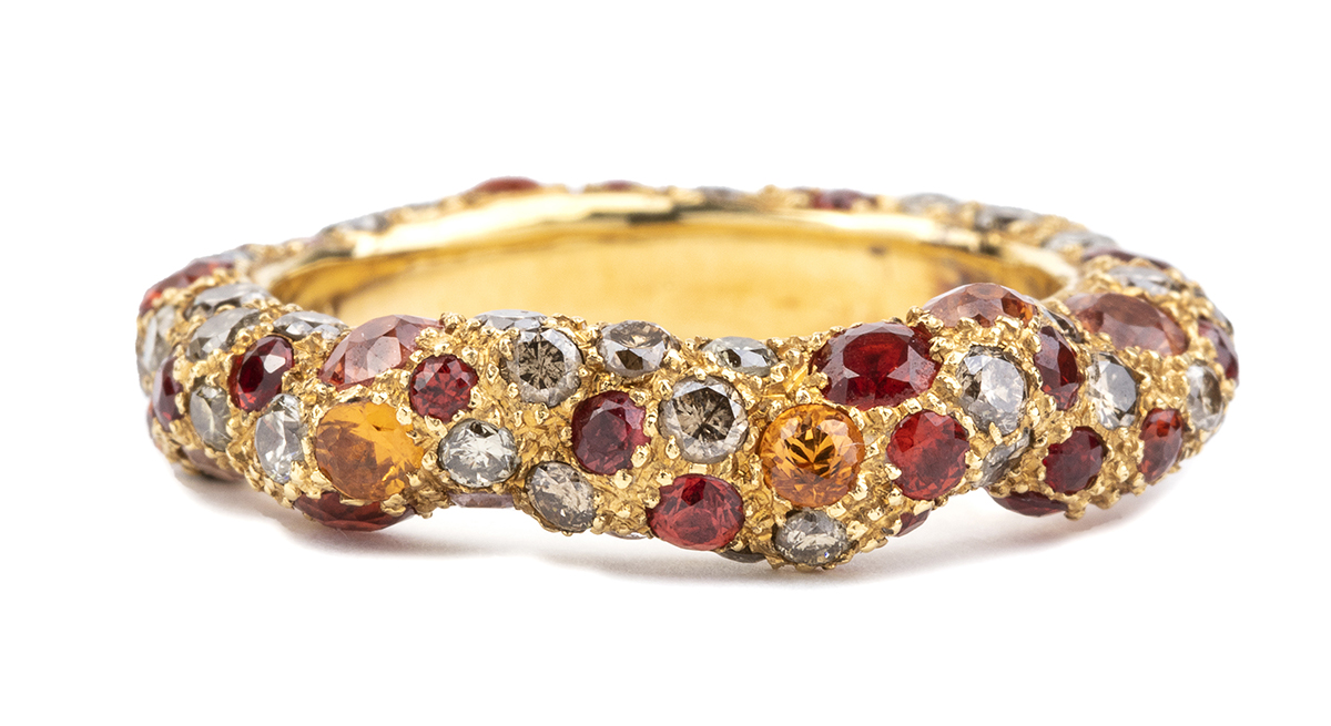 Anello in oro, diamanti, granati e tormaline