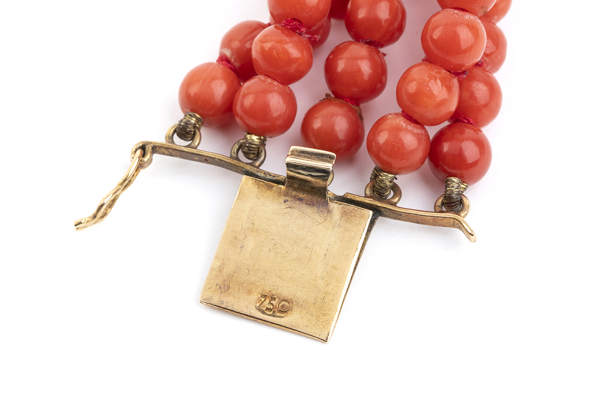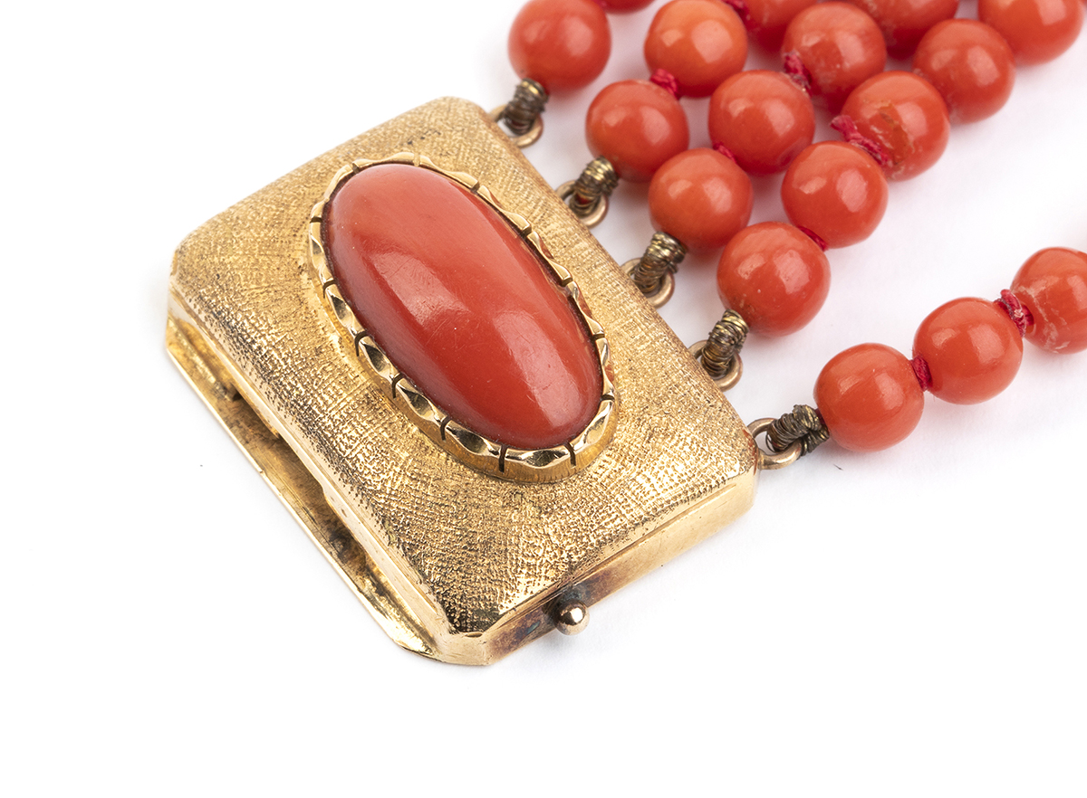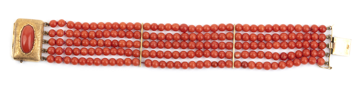 Lotto 141 | Bracciale a cinque fili di corallo Mediterraneo ed oro giallo