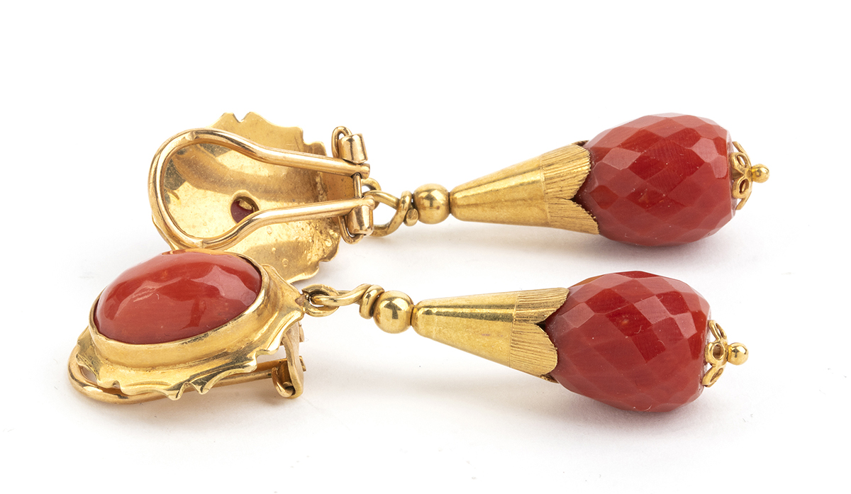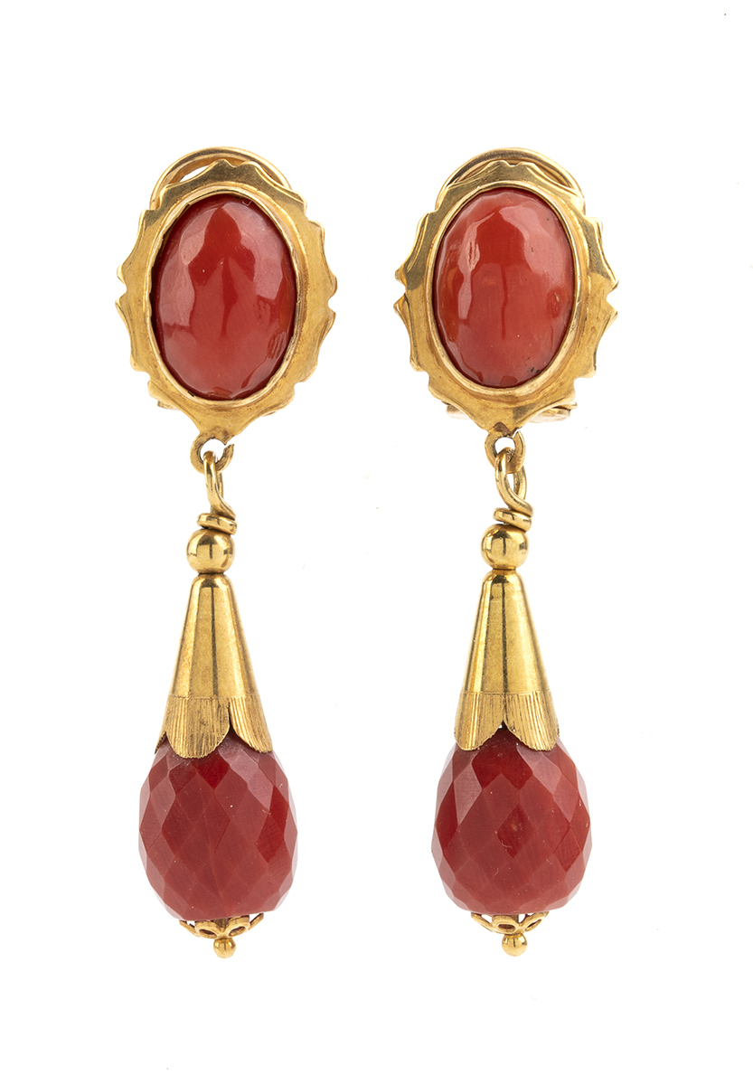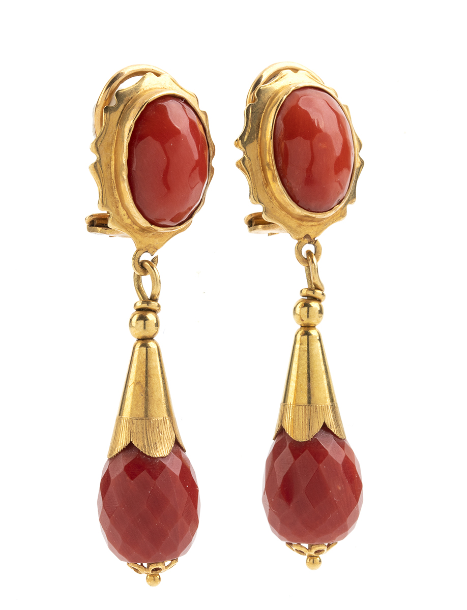 oro giallo 18k, corallo Mediterraneo (corallium rubrum).