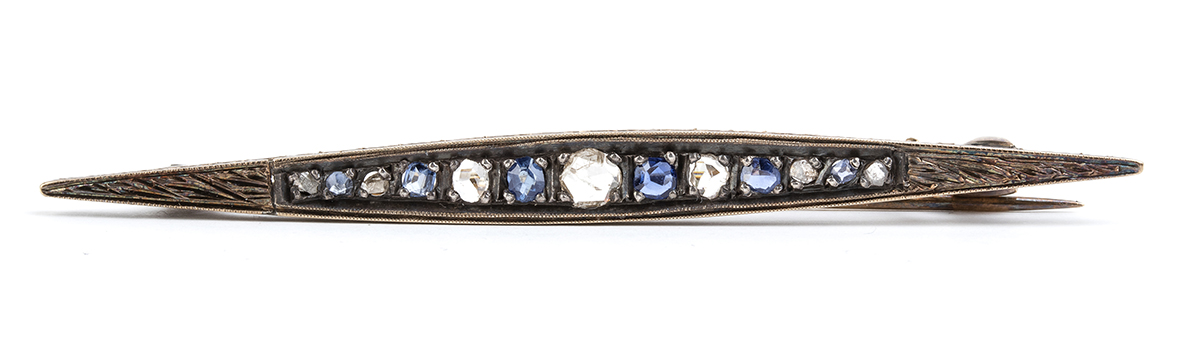 Spilla a barretta in oro, zaffiri e diamanti - fine XIX secolo
