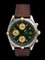 cassa in acciaio, quadrante bianco con indici e sfere dorati, vetro zaffiro antiriflesso, ghiera esterna girevole in oro giallo, corona a vite. Movimento meccanico a carica automatica, funzioni: ore, minuti piccoli secondi e crono a tre contatori. Cinturino generico di colore nero con fibbia generica in acciaio. Il fondello esterno presenta: logo e scritta Breitling - Swiss made - Serie speciale - referenza 81950 - stainless steel - waterresistent 10 atm. 100M - numero di serie 34593. Diametro 40 mm.
