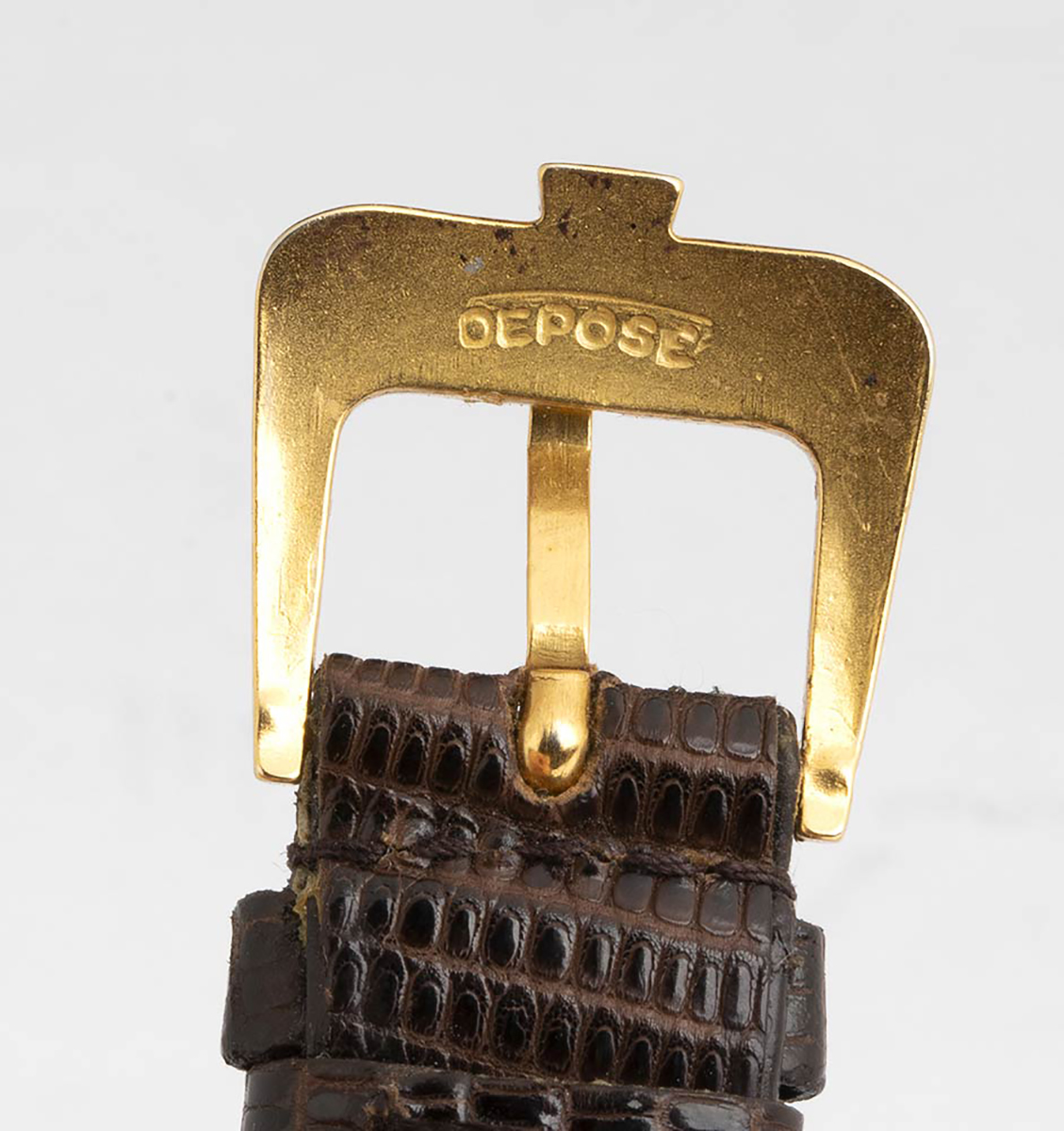 cassa in oro 18k, quadrante champagne con numeri romani, plexiglass originale. Cinturino in pelle originale.