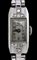 cassa in platino incastonata con diamanti taglio huit huit e bracciale in oro bianco 18k, quadrante argentato con numeri arabi e sfere nere. Movimento a carica manuale 15 rubini.