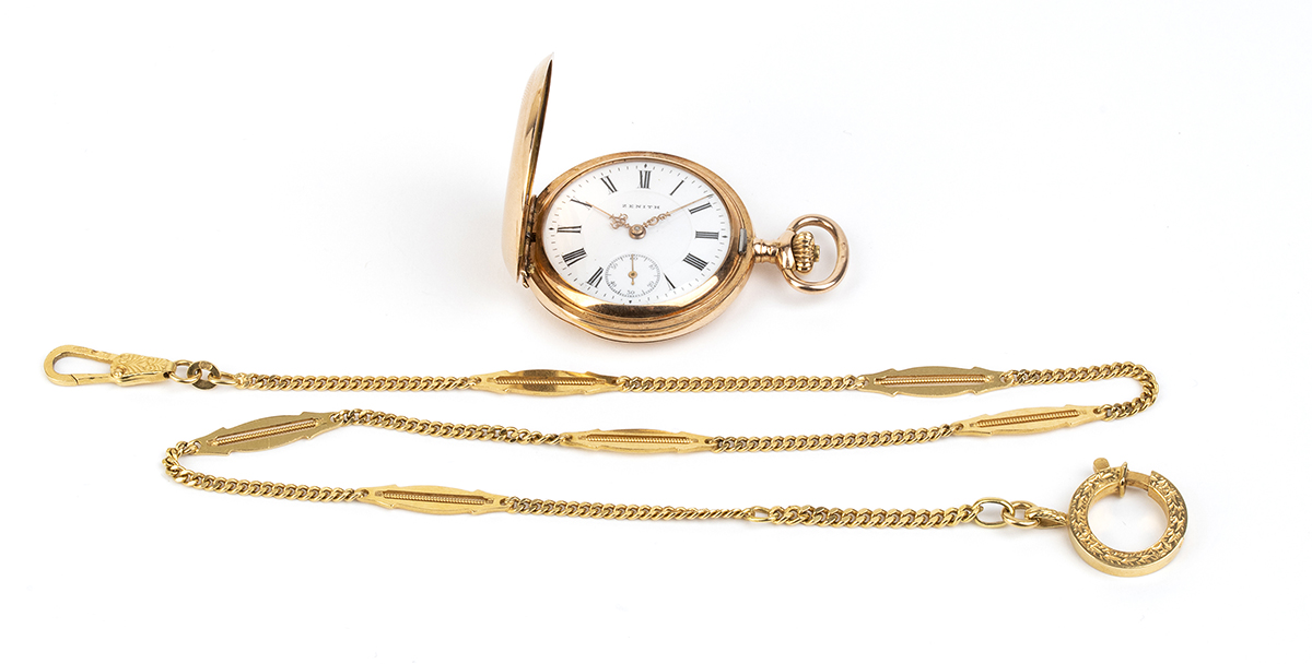 ZENITH: Orologio da tasca con catena in oro