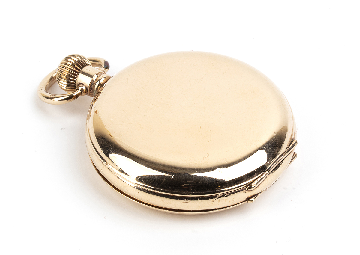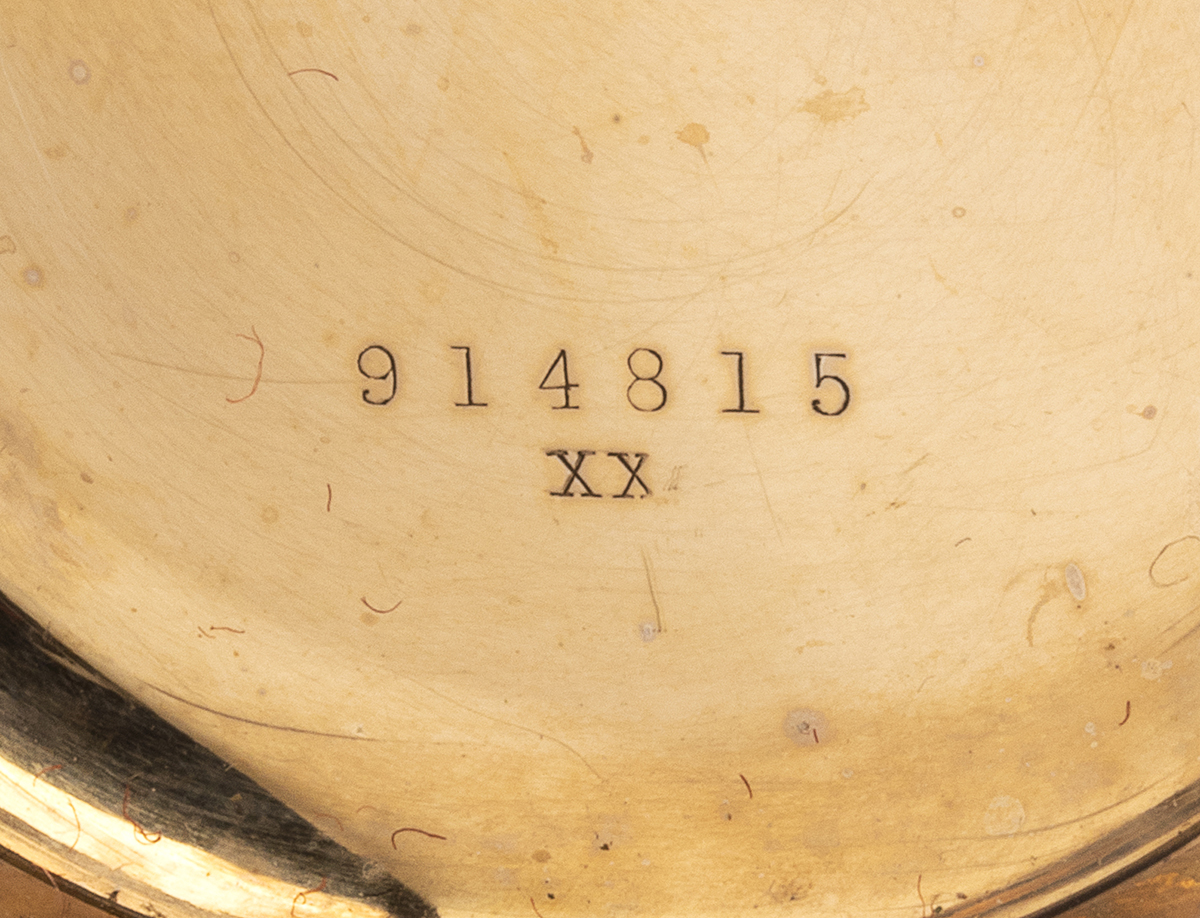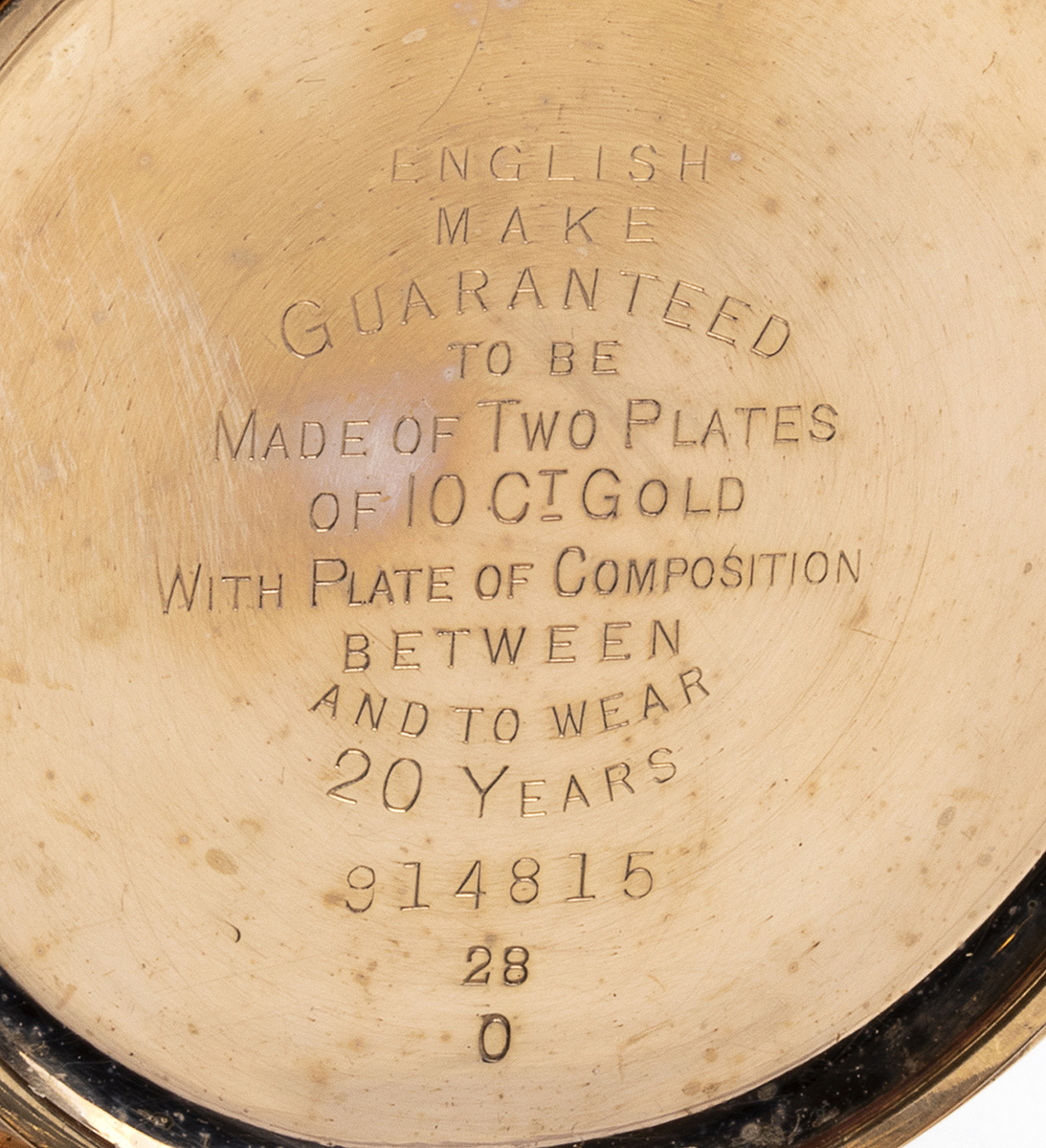 cassa dorata savonette, quadrante in smalto bianco con numeri Arabi e sfere nere. Movimento con scappamento ad ancora e carica a remontoir firmato "Rolex". Cassa nr. 914815 firmata "A.L.D Dennison watchmaker Co. ltd". Diametro 49 mm.