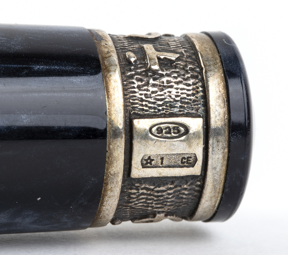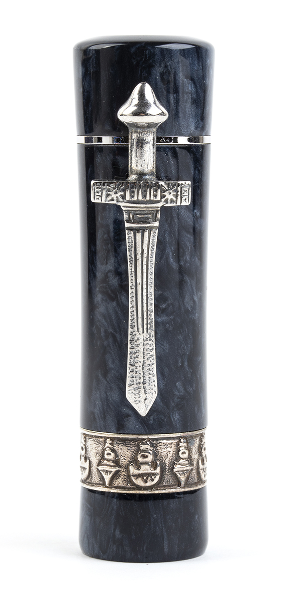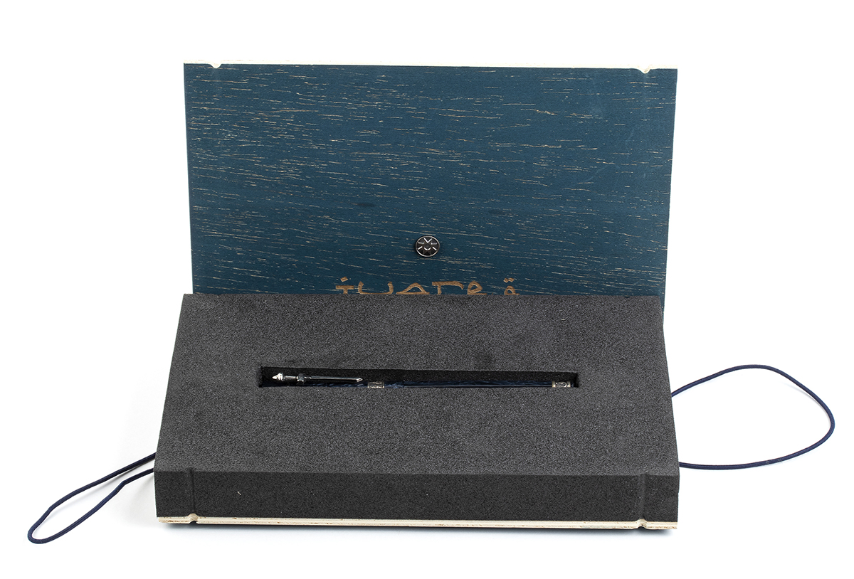 fusto, cappuccio in resina madreperlata di colore blu tornita a mano da barra piena, riportanti la scritta "DELTA ITALY TUAREG SPECIAL LIMITED EDITION". Sistema di caricamento d'inchiostro a leva laterale, pennino in oro 18k riportante la dicitura "DELTA 18Kt-750 M, 1 CE". Edizione limitata 0562/1830.
