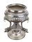 corpo circolare scanalato decorato con con tre teste leonine, poggiante su tre piedi ad artiglio su basamento a tripode. Coperchio duomato con fastigio a pigna. Argento 800/1000, punzonata con il marchio in uso alla corporazione degli orefici di Napoli per gli oggetti in argento al titolo di 833/1000 o 10 once, 1832-1872.