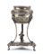 forma a tripode, poggiante su tre piedi felini. Il corpo decorato con teste di leone e decori floreali. Punzonata con il marchio in uso alla corporazione degli orefici di Napoli per l'argento al titolo di 833/1000 o 10 once, 1832-1872.