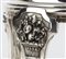corpo e coperchio con scanalature verticali, e prese laterali e versatoio con rbginetto frontale, poggiante su quattro piedi a volute fogliate. Argento 950/1000, punzonato con il marchio di esportazione francese in uso dal 1879, con il marchio degli argentieri francesi "A. Gombert & P. Bibollet" operanti a Parigi (1913/1924), con il marchio degli argentieri di Milano "F.lli Leone", con il marchio del rivenditore romano "A. Buzzetti e Figlio" e con marchio speciale italiano di recensione per articoli in magazzino in uso nel 1934-1935.