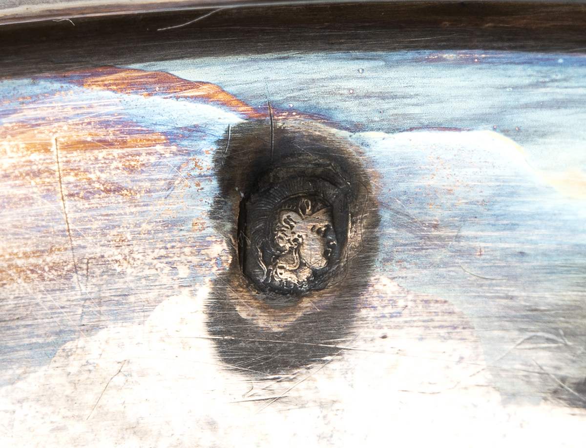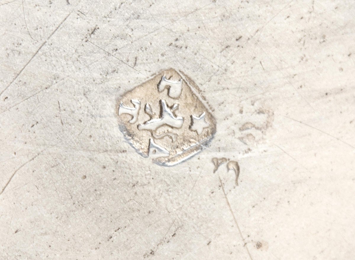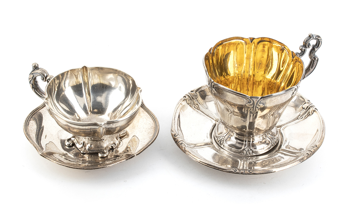 b) argentieri Pierre-François-Augustin Turquet, operanti a Parigi dal 1844 al 1855, diametro piattino 13,3 cm, altezza tazza 6 cm, diametro superiore 9,6 cm, peso totale 266 gr.