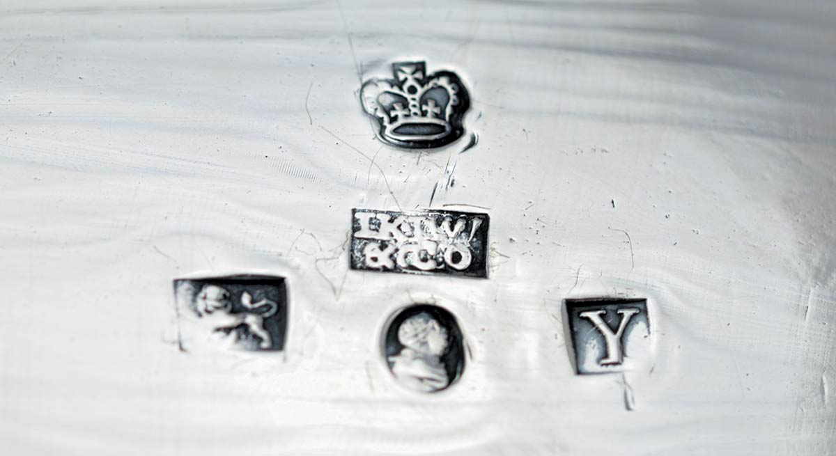 sbalzato e cesellato con pannelli floreali e decorazioni fogliate, presenta un bordo godronato. Piede ovale e manico pieghevole. Argento 925/1000, serie completa di marchi Sheffield 1821-1822, argentieri Kirby, Waterhouse & Co.