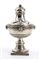 di forma circolare su basamento quadrato, corpo scanalato nella parte inferiore con bordo perlinato decorato con mascheroni. Coperchio fortemente duomato con presa fogliata. Argento 925/1000, serie completa di marchi Londra 1770-71, argentiere Thomas Wilkes Barker.