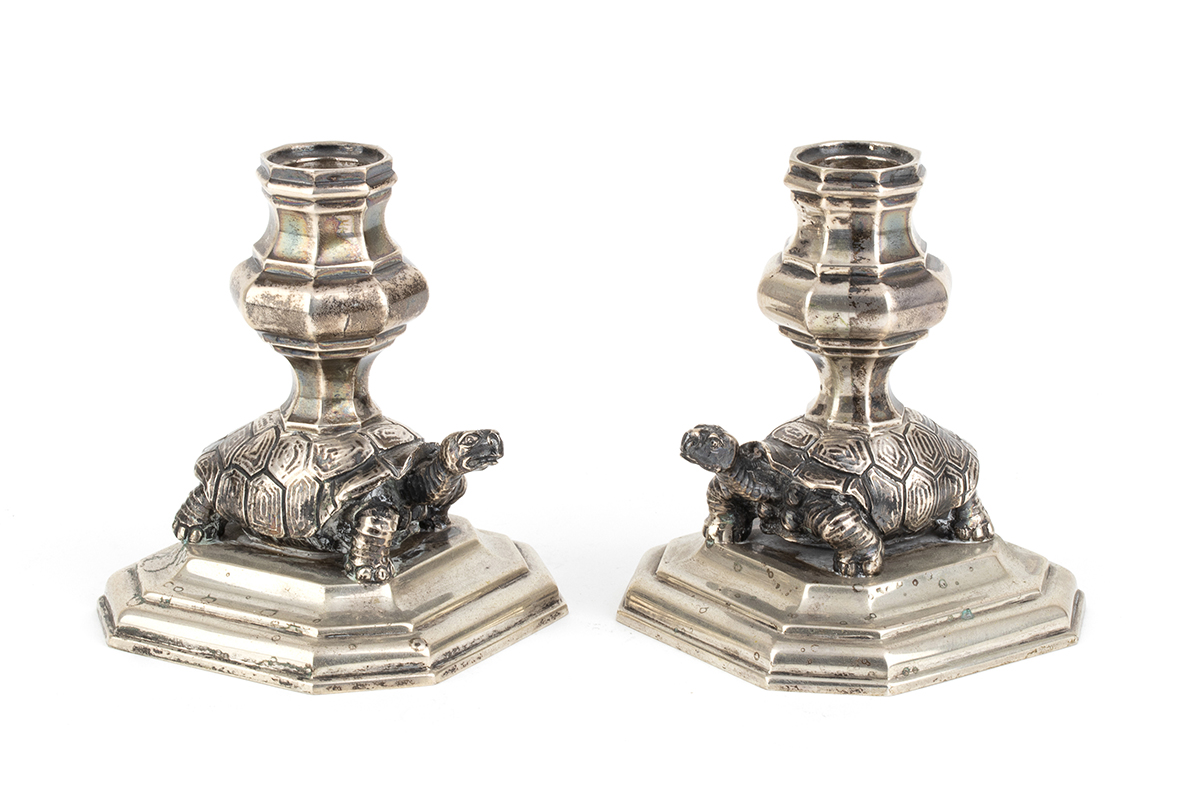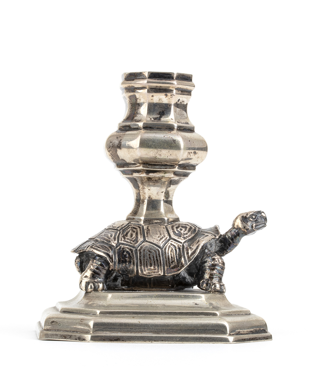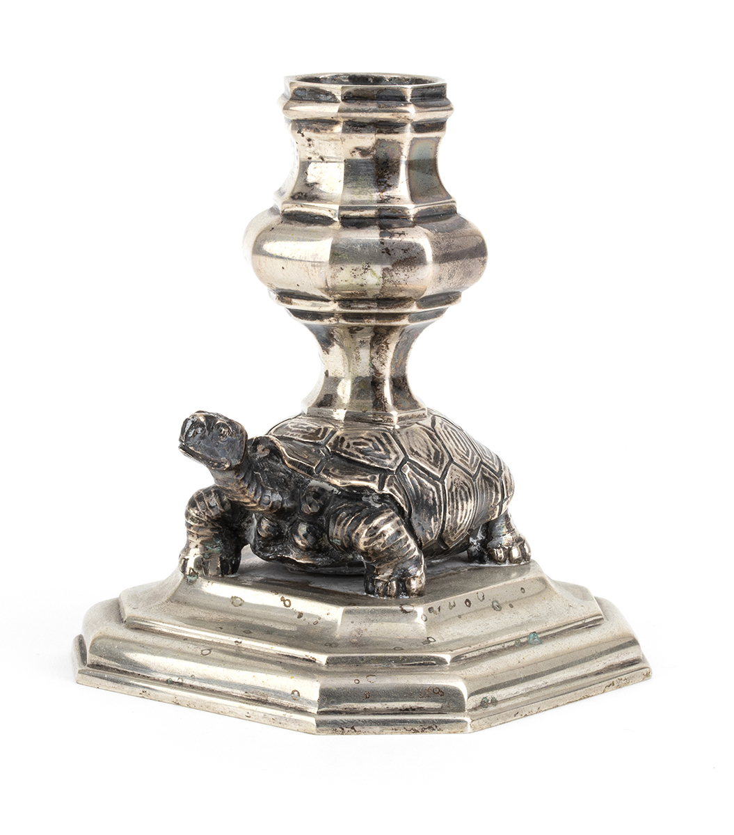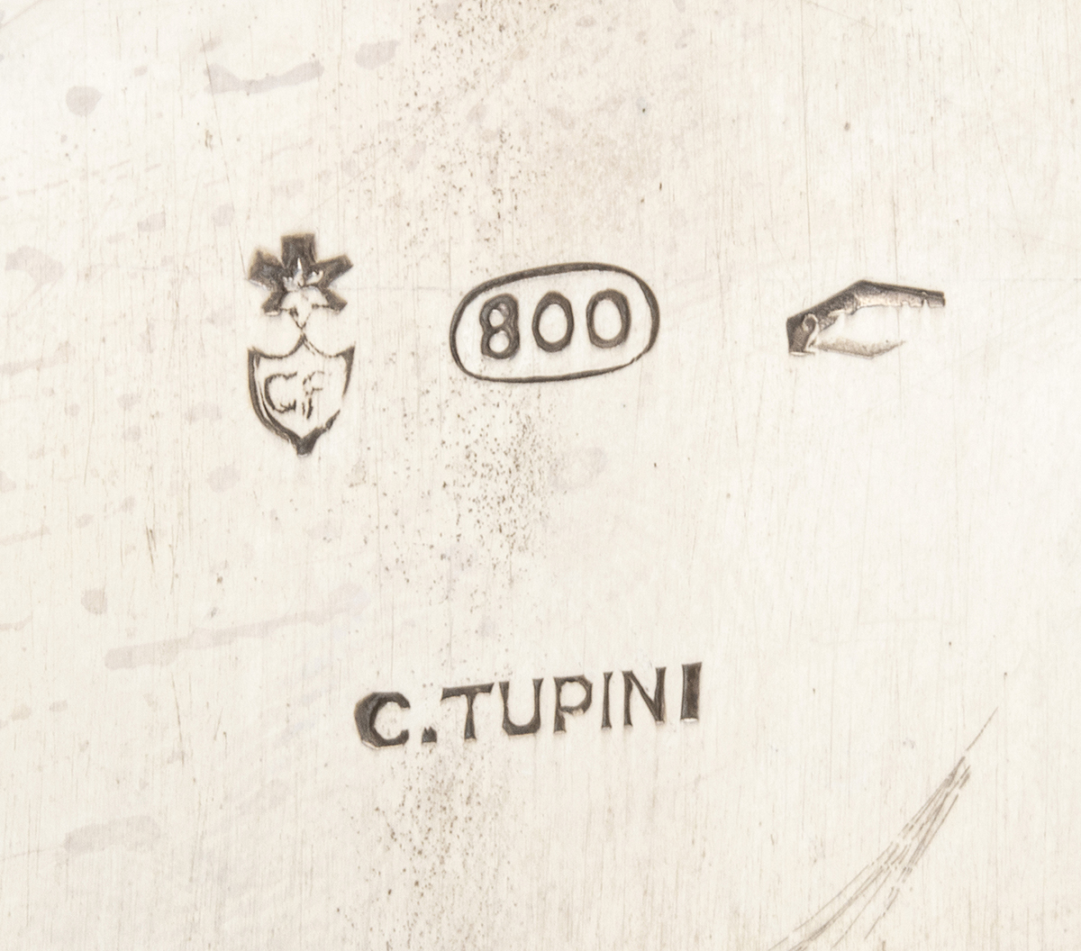 base ottagonale con fusto a forma di tartaruga. Argento 800/100, punzonati "276 MI" "800" e "Tupini", argentiere Francesco Caputo di Milano per Tupini.