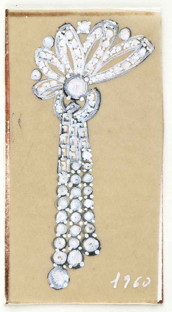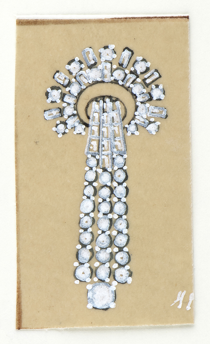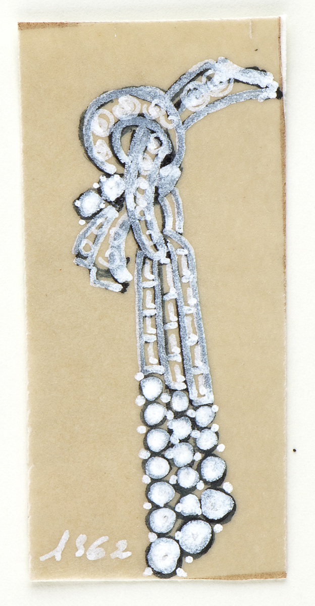 Progetto per orecchini pendenti in diamanti - anni '50, GIULIO ZANCOLLA disegnatore ed orafo per BULGARI dal 1933 al 1940