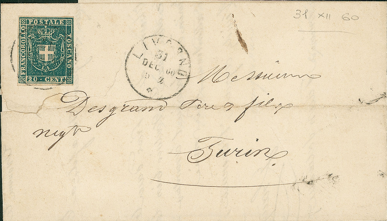 ANTICHI STATI - Toscana - 20 cent - lettera da Livorno a Torino del 31.12.60...