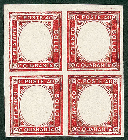 REGNO D'ITALIA - 1861 - 40 cent - blocco di quattro senza effigi e senza...