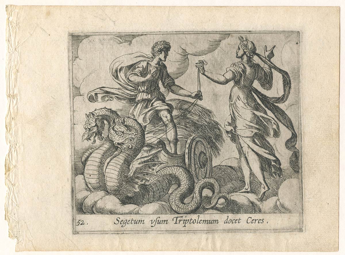 Quattro incisioni dalla serie Le Metamorfosi di Ovidio: Cupido lancia la sua freccia a Plutone; Sirene; Cerere dà il suo carro a Trittolemo
