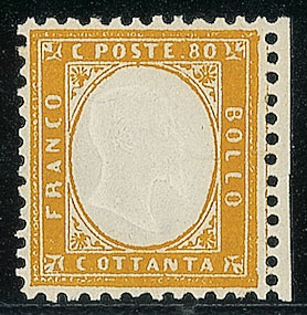 REGNO D'ITALIA - 1862 - 80 cent - filetto destro di riquadro (pos.5) - gomma...