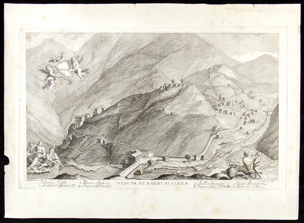 GIUSEPPE ANGELI DA G. B. MALERBI: Veduta de' Bagni di Lucca