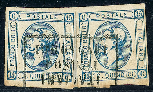 REGNO D'ITALIA - 1863 - 15 cent + 15 cent - Piroscafi Postali Italiani (Italiani capovolto) (13+13)