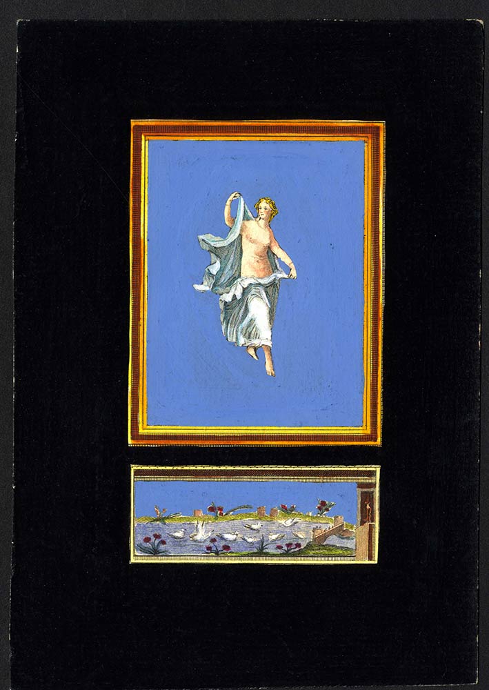 Piccoli delinati acquarellati a tempera alla pompeiana con le raffigurazione delle ORE ; 1810 ca.