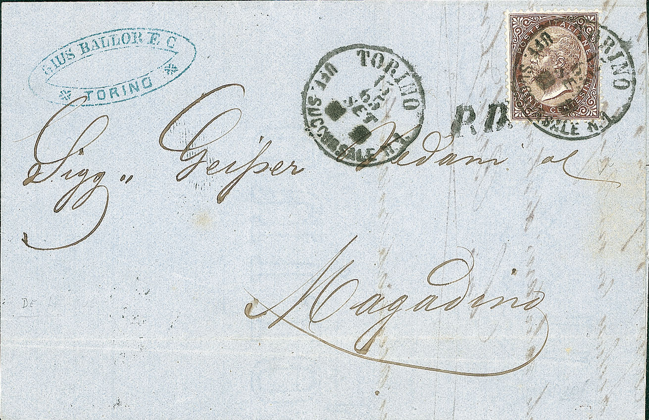 REGNO D'ITALIA - 30 cent De La Rue - lettera da Torino a Magadino/Svizzera...