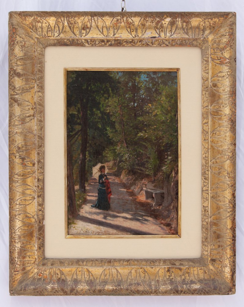 Marco De Gregorio Resina (NA ) 1829 - Napoli 1876 Lungo il viale Olio su tela cm 34,5x24