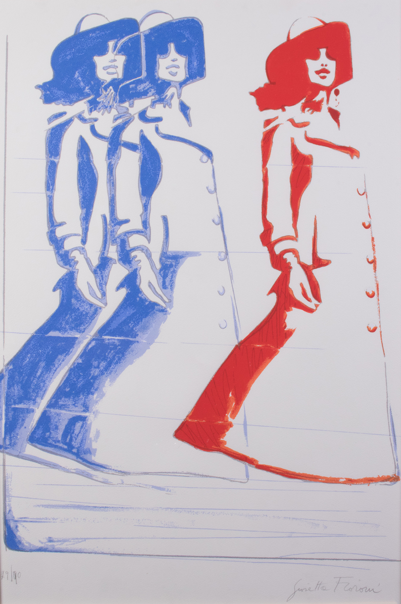 B) Giosetta Fioroni, Senza titolo, serigrafia a colori, es. 79/90, cm. 78x52,5 (luce). Firma a matita sul margine in basso a destra: Giosetta Fioroni, tiratura in basso a sinistra: 79/90.